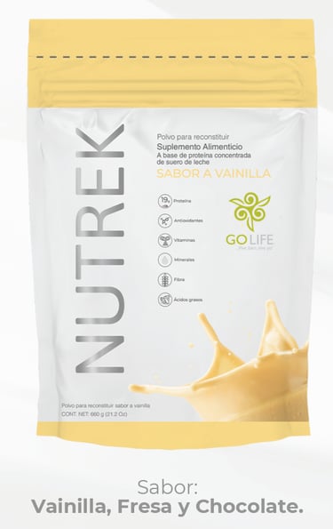 Polvo para preparar Bebida Multinutricional. con una extraordinaria mezcla de nutrientes que generan sensación de bienestar inmediata, puede ser usado como desayuno, cena o ambos. La combinación de 55 antioxidantes, 19 gramos de proteína, 13 vitaminas escenciales, minerales, 20 aminoácidos, 6 plantas medicinales, omegas 3 y 6, coenima Q10, ácidos grasos, oligoelementos y fibra generan sensación de bienestar, ideales para el correcto funcionamiento de órganos y sistemas.